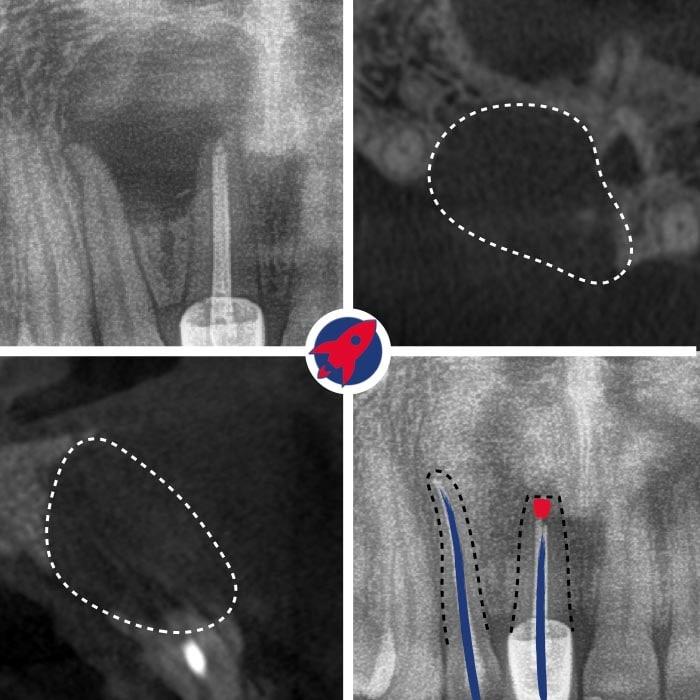 A patient presented with pain in a tooth that had already undergone root canal treatment. The X-ray showed an inadequate filling. With the help of a CBCT image, we discovered an additional root that had previously been overlooked. This discovery enabled us to perform a successful revision, as documented by the images shown.